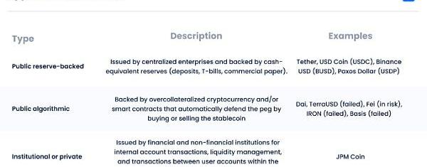 任何稳定币表现的最重要指标是资产将其与参考价值挂钩的程度。如上表所示,稳定币可以从不同的角度进行分类,每种类型都有自己的缺点