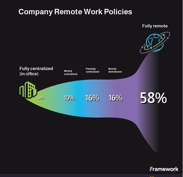 大多数接受调查的公司认为自己是「分布式办公完全体」,并将远程工作作为其业务的主要运营模式。根据调查结果,即使是总部设在美国的公司,也有超过33%的员工来自世界各地,鉴于加密货币的汇集「全球劳动力」的特点,这种运作模式似乎是必要的。早期阶段的公司更倾向于是远程办公,而已经获得A轮或B轮融资的公司则有可能拥有一个或多个正式办公室。