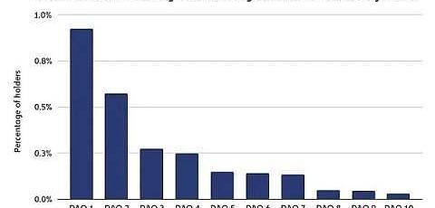 同时,创建与DAO治理相关的提案的门槛更高。同一项研究发现,在10个DAO中,只有千分之一到万分之一的代币持有者拥有足够的代币来提交提案。