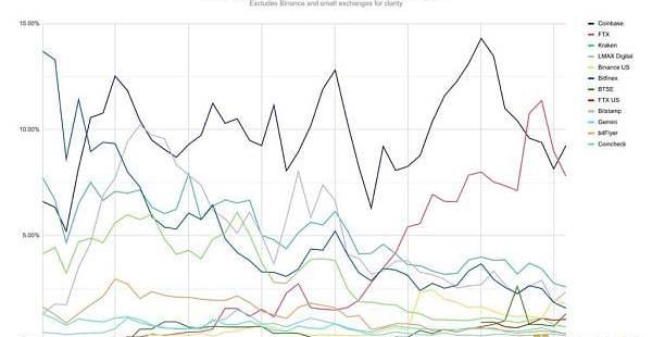 7-市场份额方面,币安占到了69.5%,Coinbase占9.3%,FTX占7.8%,Kraken占2.6%。