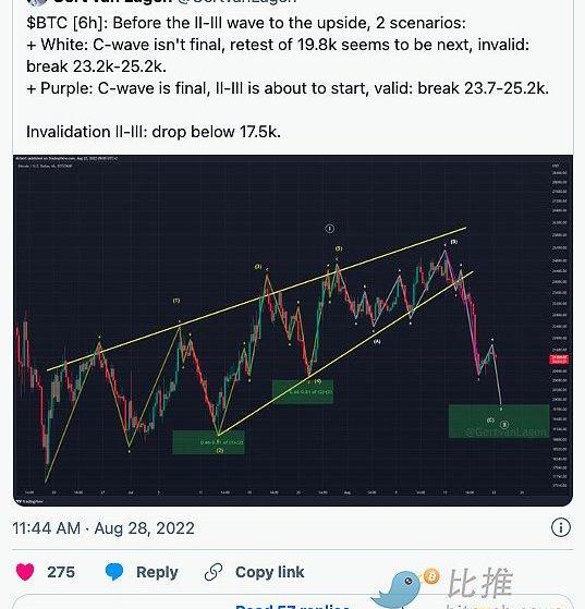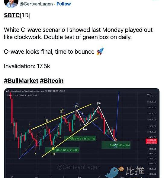 在17,000美元或更低的呼声中,技术分析师GertvanLagen给出了日线图17,500美元的最低目标。