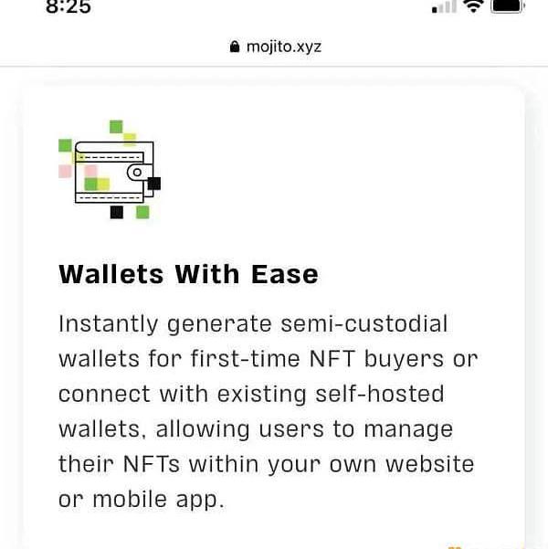 相反,如果用户是个没有钱包的Web3新人,Mojito会在用户下订单的同时为他们开通一个钱包。这个钱包是一个半托管钱包,用户并不需要自己处理私钥等问题。