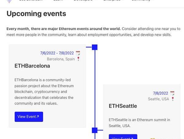 以太坊进入市场后,它并没有一个中心化的市场部门来处理所有的信息。其通过支持身处不同地方的组织者,让世界各地的社区成员都能在同样的图标的召集下,举办一个个充满凝聚力的分部聚会,同步讨论着生态里的项目名册。
