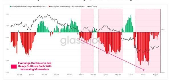 总而言之,在2022年5月LUNA抛售之后,交易平台出现了10万BTC的净流出,占2020年3月ATH以来总流出的3.2%。