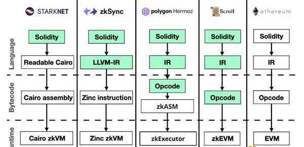 这些zkEVM采用以Solidity编写的智能合约代码,采用这种方法可以让代码更有效地运行,但它抛弃了很多以太坊现有的基础设施。例如,众所周知,geth客户端具有某些限制,这就是为什么像zkSync这样的团队已经用其他用Rust编写的软件替换了它。