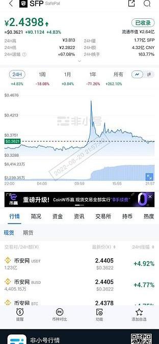SFP当前表现强势。当前的市值绝对是一匹黑马,并被无数基金投资机构以及资本涌入和宣传,且几乎全球主流市场都支持SFP交易。